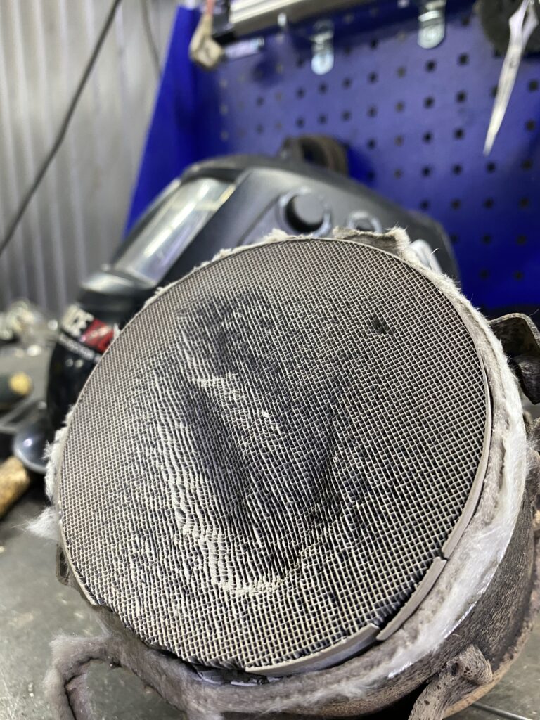 • Оплавление и падение эффективности: со временем керамика внутри катализатора расплавляется, скорость потока выхлопных газов падает, увеличивается расход топлива, теряется динамика.